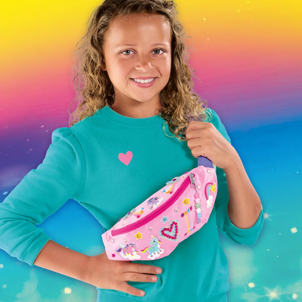 Met deze set kun je een heuptas ontwerpen die niemand anders heeft. Kleur, plak en versier naar hartelust, en maak je look af met een zelfgemaakte tasbedel. Een perfect project voor feestjes, speelafspraken of gewoon een creatieve middag thuis.