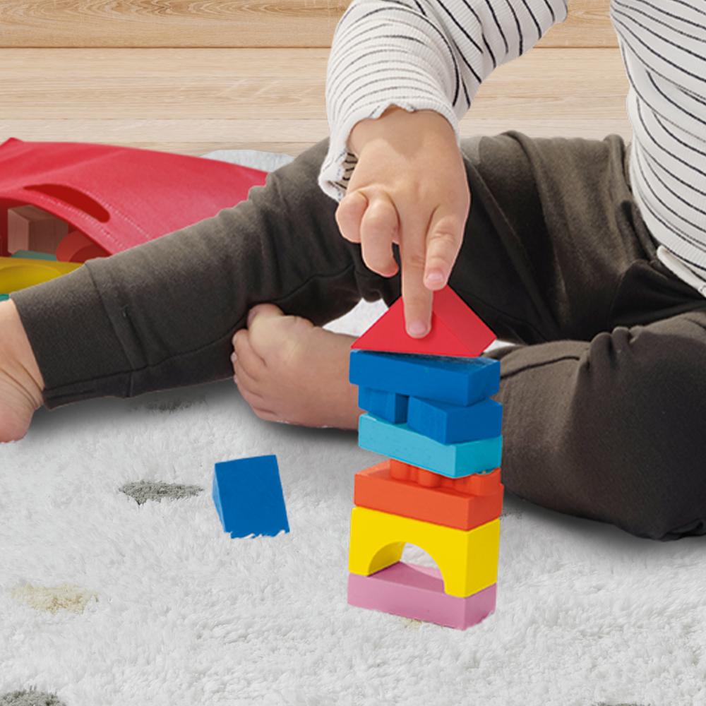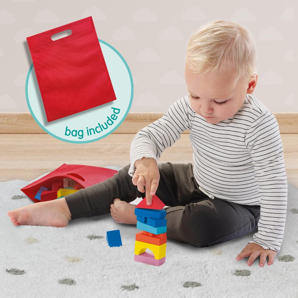 Met deze set kunnen kinderen hun eigen bouwprojecten realiseren. De heldere kleuren en de goede kwaliteit van de blokken maken het eenvoudig om indrukwekkende structuren te maken. Het proces van bouwen en stapelen helpt bij de ontwikkeling van motorische vaardigheden en stimuleert de creativiteit. Deze set is ideaal voor kinderen om samen met ouders of vriendjes te spelen. Het bevordert niet alleen de creativiteit maar ook de samenwerking en interactie. De handige bewaartas zorgt ervoor dat de blokken gemakkelijk op te bergen zijn en altijd klaar voor gebruik.
