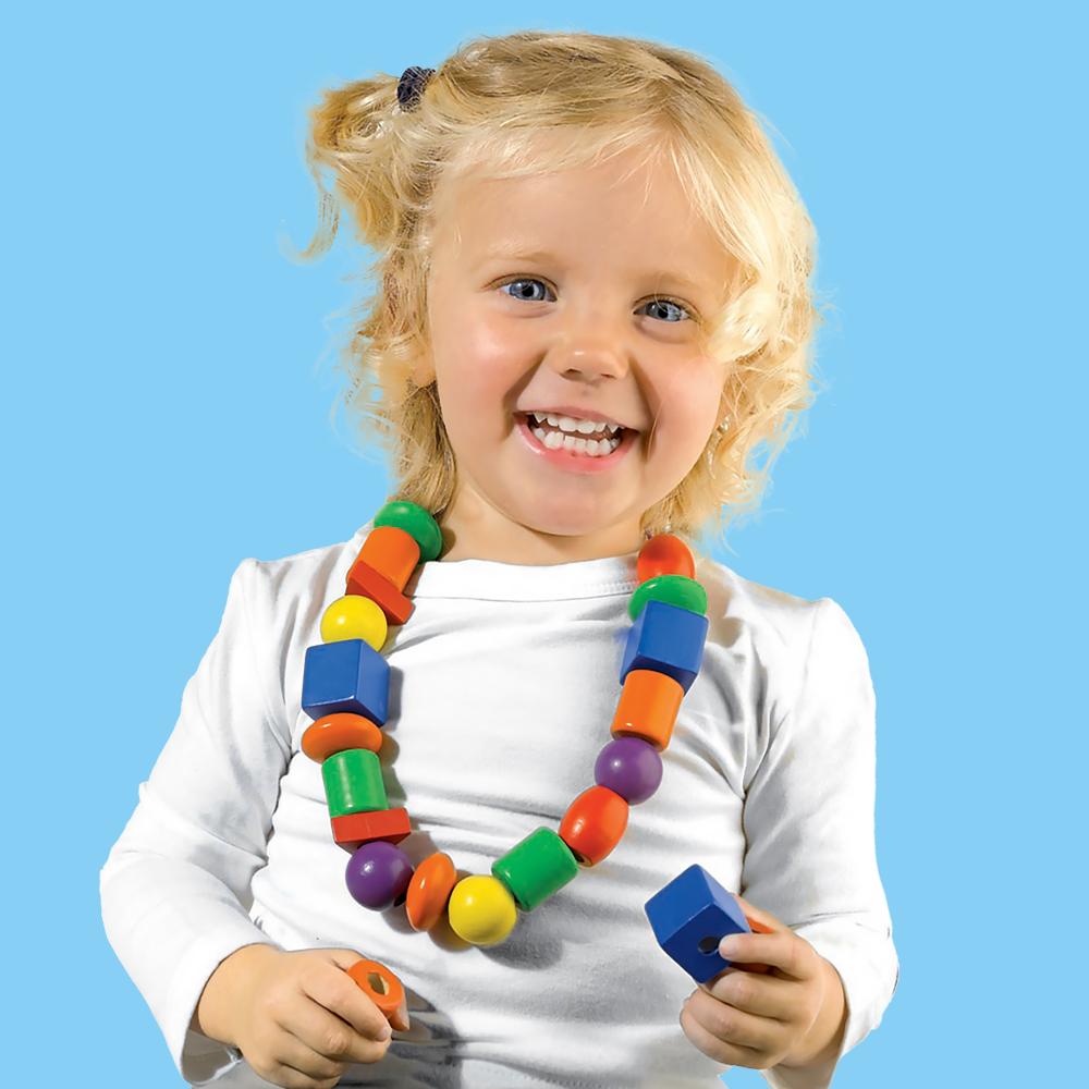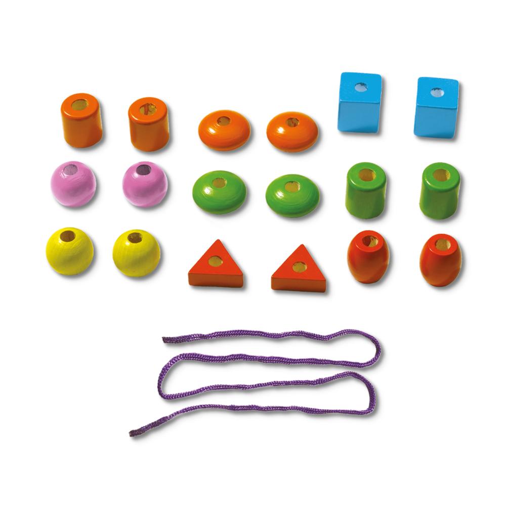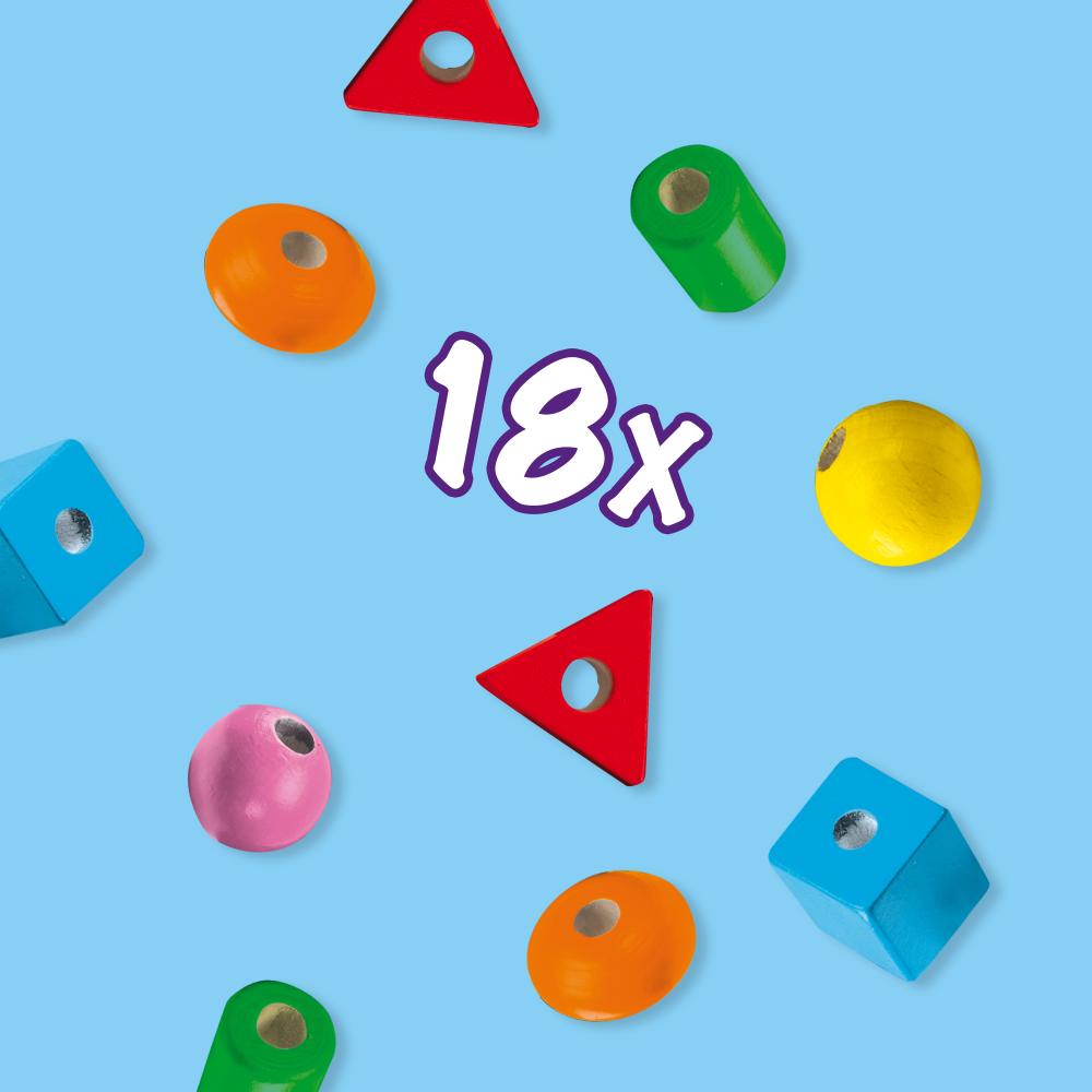 Rijgen wordt leuk én leerzaam met de Ik Leer Rijgen set van SES Creative. Deze kleurrijke set bevat 18 houten kralen in verschillende vormen en vrolijke kleuren, speciaal ontworpen voor kleine kinderhandjes. Ideaal om spelenderwijs de fijne motoriek, hand-oogcoördinatie en creativiteit te ontwikkelen.