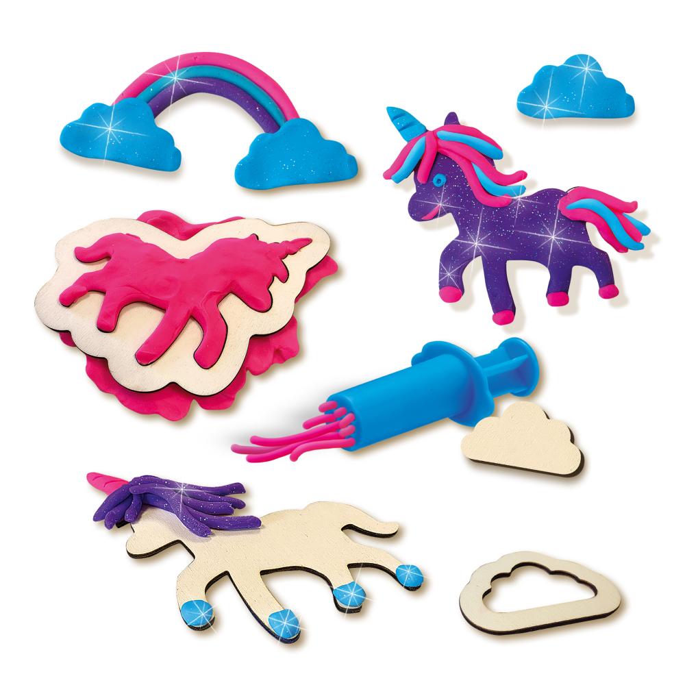 Met deze set kunnen kinderen hun eigen unicorns boetseren met kleurrijke en glinsterende klei. De zachte en makkelijk te bewerken klei maakt het eenvoudig om de mooiste creaties te maken, die niet uitdrogen tijdens het spelen. Een geweldige manier om creatief bezig te zijn en de fantasie de vrije loop te laten.