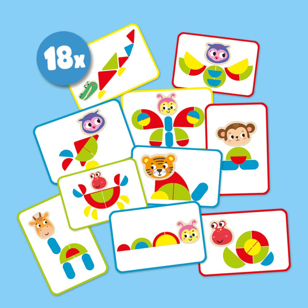 7 dierenkoppen + 30 houten vormen voor eindeloze combinaties
