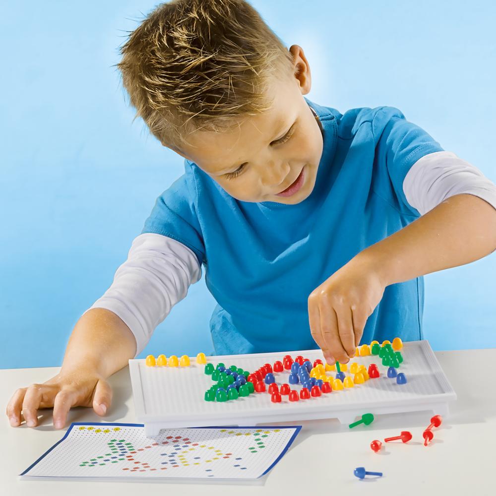 Met dit mozaïekbord kunnen kinderen eindeloos figuren maken en hun creativiteit ontwikkelen. Perfect voor kleine kunstenaars vanaf 3 jaar die graag ontwerpen met kleurrijke pinnen.