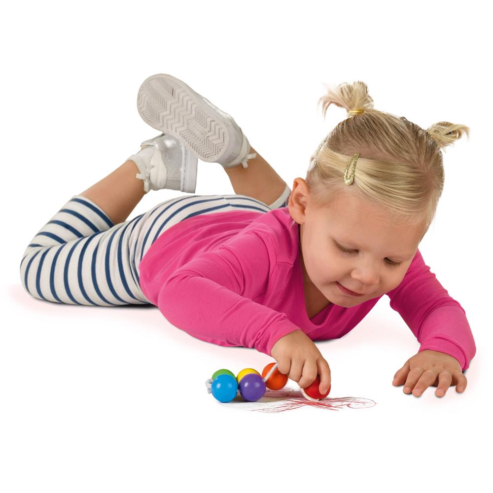 Pak de kralen ketting erbij en begin met tekenen! Deze speciale krijtkralen van SES Creative zijn perfect voor de allerkleinsten dankzij de gemakkelijke grip. Door de ronde vorm kunnen peuters ze gemakkelijk vast pakken en leren kleuren met krijt. De kralen zijn aan elkaar geregen waardoor je ze niet snel zult kwijt raken. Ideaal voor kinderen die hun eerste stapjes in de wereld van tekenen willen zetten!