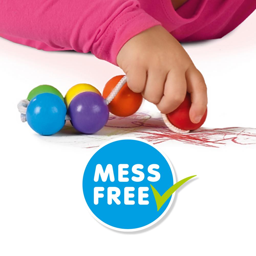 – De krijtjes zitten aan elkaar geregen, waardoor je ze niet makkelijk kwijt raakt en geen rommel krijgt