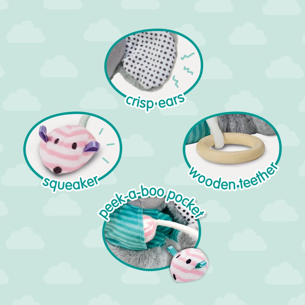Met Olfi de olifant ontdekt je kleintje nieuwe texturen en geluiden, wat bijdraagt aan de zintuiglijke ontwikkeling. Of het nu is om te knuffelen of om mee te spelen, Olfi biedt urenlang veilig en leerzaam plezier.