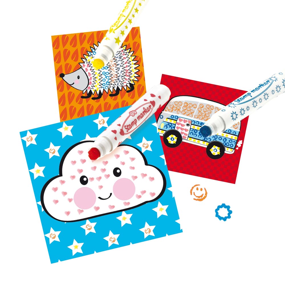 Met deze set kunnen kinderen eenvoudig hun tekeningen versieren met vrolijke patronen. Elke stift heeft een uniek motief voor creatieve kunstwerken.