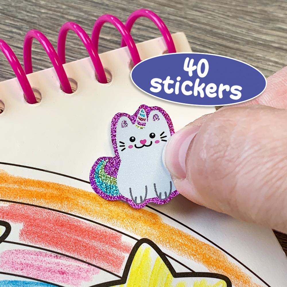 Met 15 betoverende kleurplaten van vrolijke unicorns, is er genoeg ruimte om je creativiteit de vrije loop te laten. Wat dit kleurboek zo bijzonder maakt, is de kleurrijke regenboog foam en squizy hoorn die op elke pagina zichtbaar is. Dit geeft een extra dimensie aan je kunstwerken. En alsof dat nog niet genoeg is, krijg je er 40 sprankelende stickers bij om je tekeningen nog meer te laten schitteren.