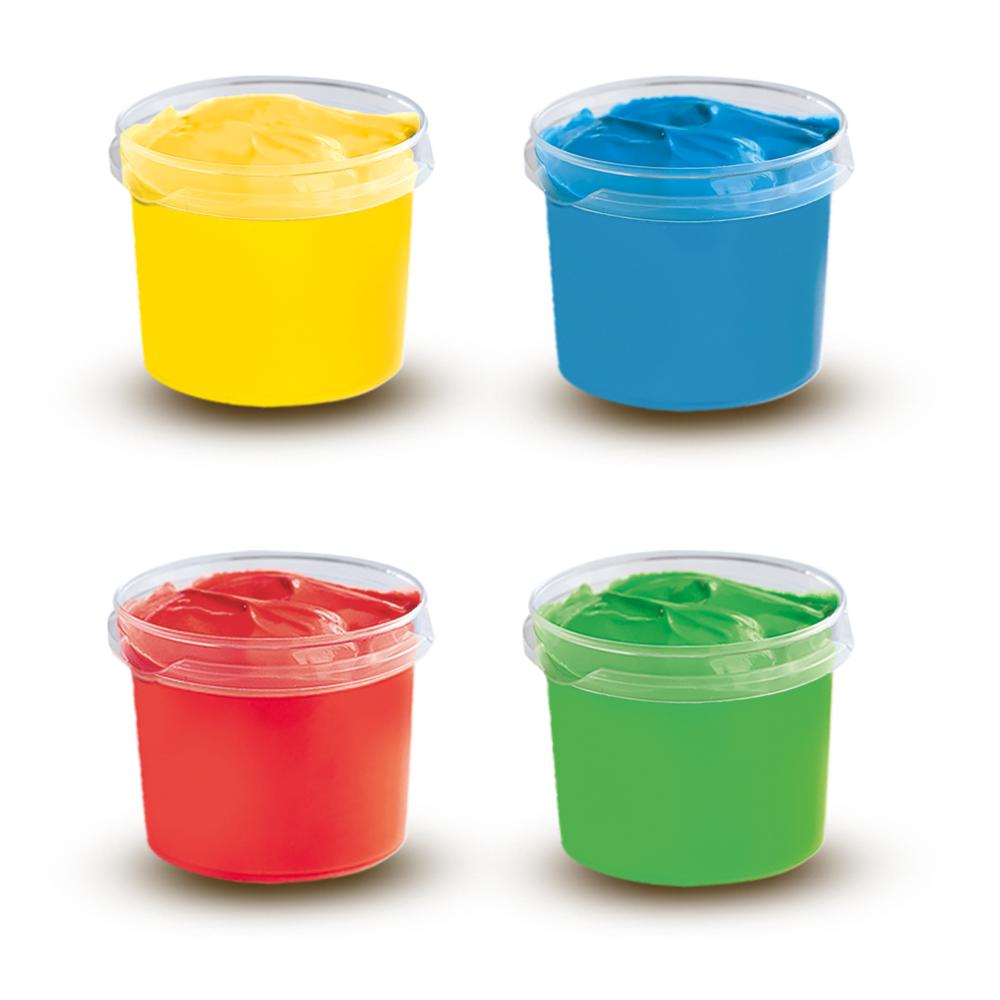 – 4 verschillende kleuren vingerverf in potjes van 110ml