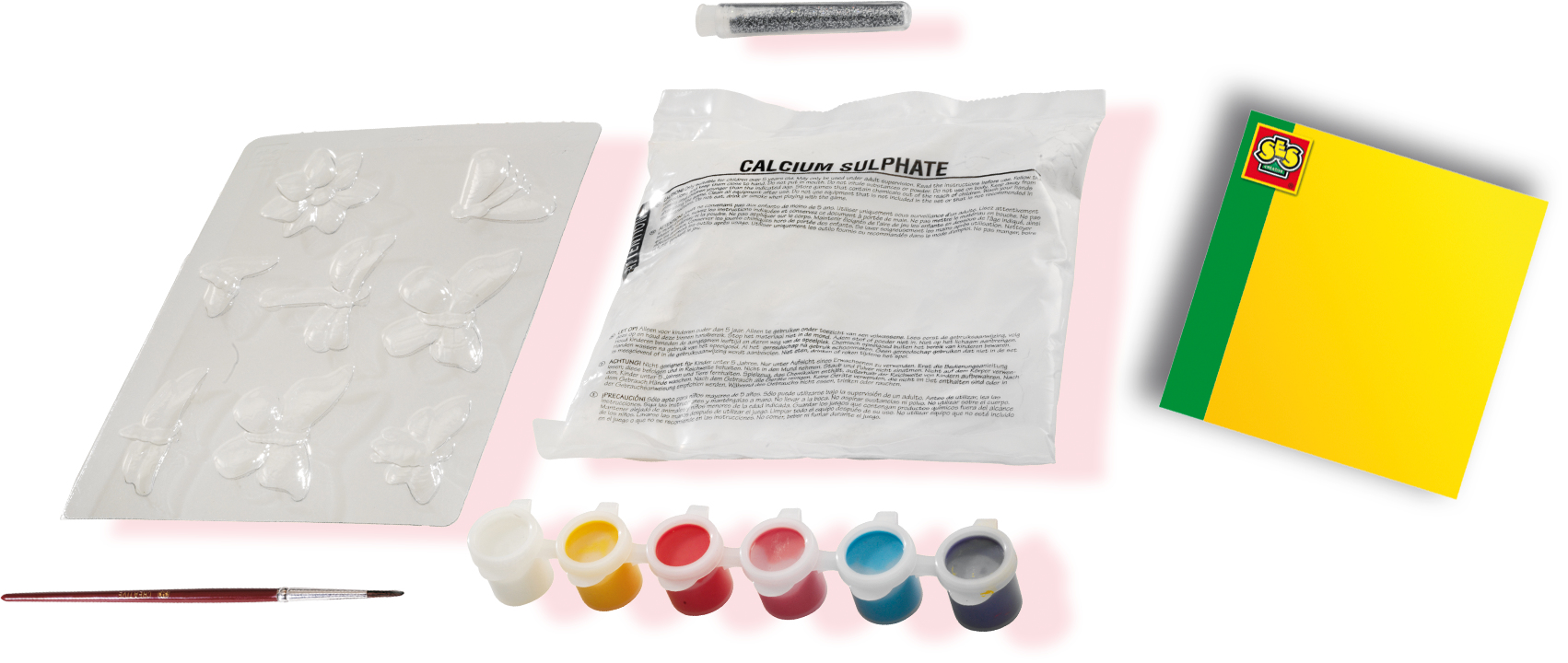 Maak de mooiste beeldwerkjes van gips met SES Creative. Nadat je deze vlinders en bloemen van gips hebt gegoten. Kun je ze gaan beschilderen in de mooiste kleuren en verder versieren met glitterstof.