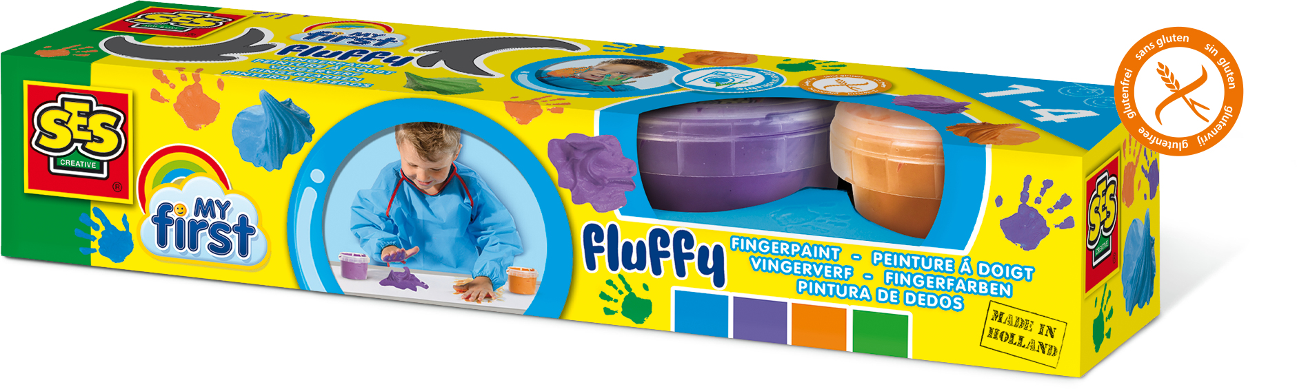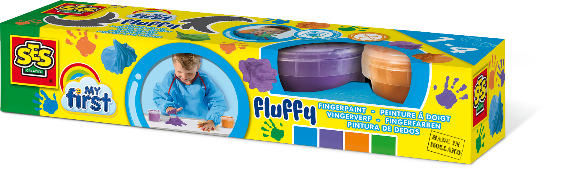 Dit is geen gewone vingerverf, dit is fluffy vingerverf! Deze luchtige verf voelt aan als een soort mousse, waardoor je er lekker dik mee kunt kliederen. Door de dikke textuur stroomt de verf ook niet uit het potje als je het per ongeluk omgooit, fijn voor papa en mama!