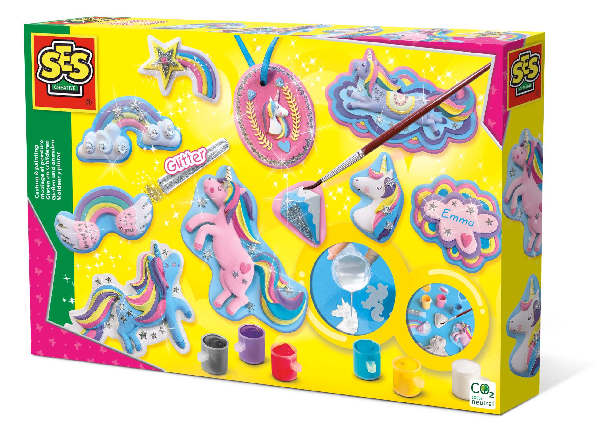 Houd jij ook zo van eenhoorns? Met deze set van SES Creative maak je eenvoudig allerlei leuke eenhoornbeeldjes van gips. Giet het gips in de mal en laat het uitharden. Pak dan de bijgeleverde verf erbij en schilder de eenhoorns in je favoriete kleuren. Leuk om te doen en een super resultaat!