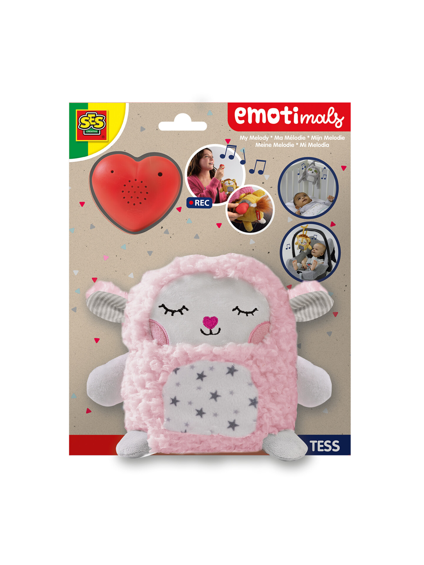 Emotimals van SES zijn meer dan zachte knuffels. De My Melody Emotimals zijn er voor de allerkleinsten en kunnen vastgemaakt worden aan de wieg, een autostoeltje, kinderwagen of buggy. Ze hebben een speciaal hart waarop je zelf een liedje kan inzingen of een berichtje kan opnemen. Met een My Melody Emotimal is mama, papa, oma of opa altijd dichtbij!