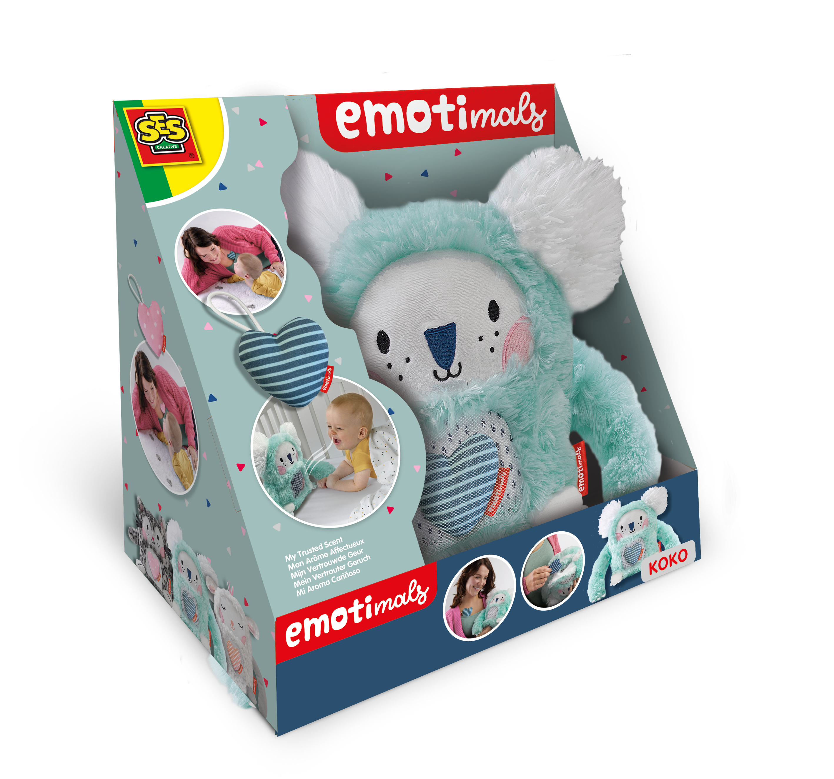 De geur van mama of papa voelt vertrouwd voor baby’s en kleine kinderen en werkt rustgevend. De My Trusted Scent Emotimals van SES zijn door hun speciale hart meer dan zachte knuffels met lange armen en een staart. Het stoffen hart is zo ontworpen dat het jouw vertrouwde geur opneemt als je het op je lichaam draagt. Met het hart in de speciale buidel van de knuffel heeft je kindje altijd een vertrouwde geur om zich heen. Alle Emotimals zijn gemaakt van stof met verschillende texturen, zodat ze heerlijk knuffelen.