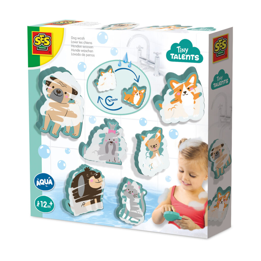 Heute ist Waschtag! Mit diesem Set von SES Creative ist süßer Hunde-Badespaß garantiert. Die frechen Vierbeiner und eine mutige Katze haben sich ein dreckiges Schlammbad gegönnt und müssen nun gewaschen werden. Blitzschnell sind sie inmitten einer blubbernden Schaumwolke verschwunden und wollen wieder sauber sein. Kein Problem! Einfach Wasser benutzen und im Handumdrehen erstrahlen die liebevollen Tiere wieder in vollem Glanz. Wasser marsch – der Lieblingshund freut sich über das saubere Fell!